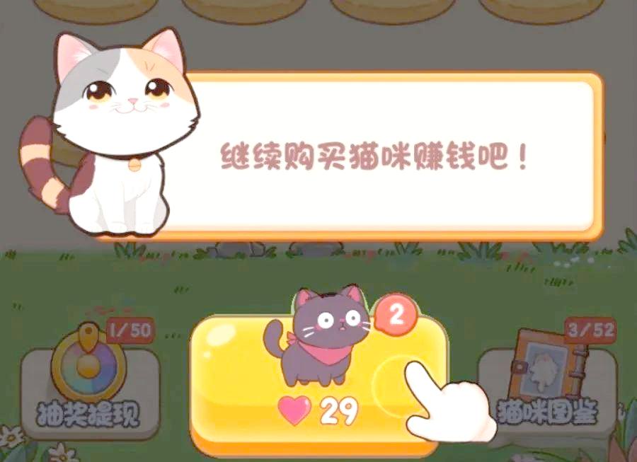 首先,你需要进入游戏,并点击屏幕下方的“猫咪”图标按钮。这样,你就可以开始选购你的第一只小猫咪了。接下来,通过不断的合成与升级,你可以逐步解锁更多品种的猫咪,并有机会领取丰厚的红包奖励。