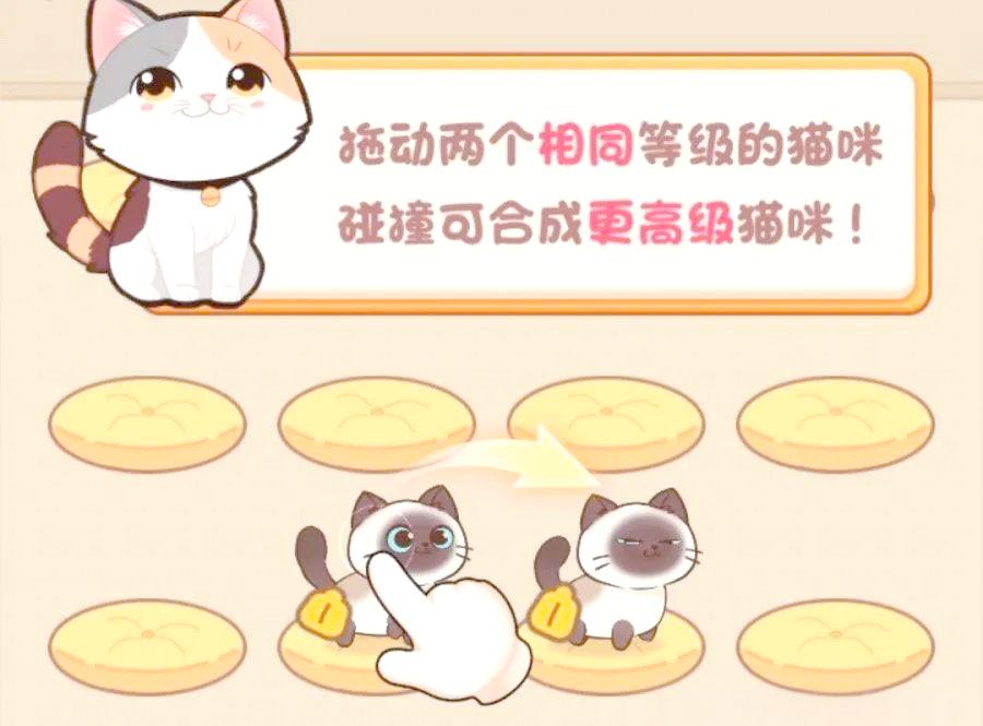 方法一(拖动法):只需用手指按住一只小猫咪,并将其拖动至另一只小猫咪的身上,这样,两只猫咪即可成功合成,变为一只更高级、品质更佳的猫咪。